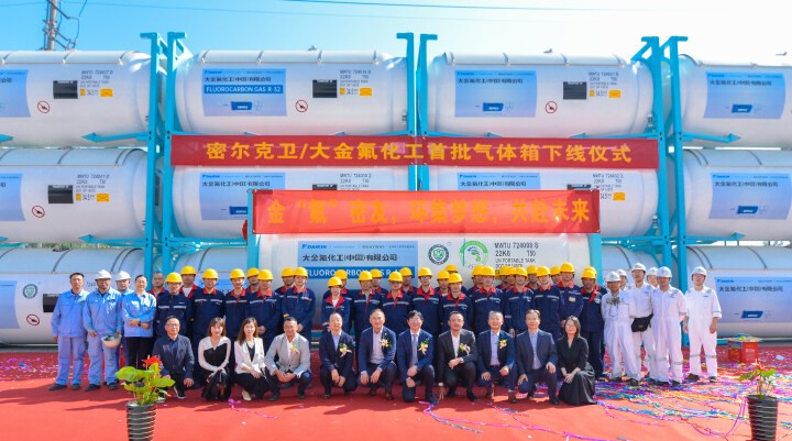 11月1日上午,密尔克卫和大金氟化工首批46台气体箱在中集安瑞环科技股份有限公司(简称“中集环科”)下线。