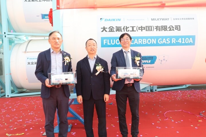 密尔克卫、大金氟化工、中集环科分别作为化工仓储物流、精细化工、能源化工物流装备领域的佼佼者,多年来,在绿色发展、低碳发展、可持续发展方面取得了令人骄傲的成绩,作出了敢想敢为的表率。本次下线的气体箱产品采用了创新的新材料、新工艺,在筒体和框架采用了大金氟化工新一代4F型高固体分、低VOC环保氟碳树脂油漆,具有超长耐候、优良的防腐性能;同时,罐内率先采用了氟盾水性漆,与传统的镀锌工艺相比,不仅兼容性能更好,而且更加绿色环保,也便于日后维护。据中集环科总经理季国祥透露,本次产品应用的这些新技术,彰显了包括中集环科在内的三家企业在追求绿色发展、低碳发展上的共同理念和心血付出。